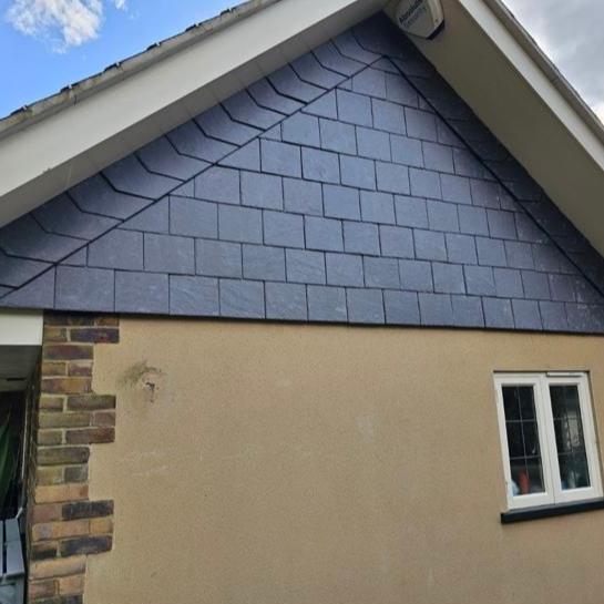 Swipe through the photos to see our latest project for a valued repeat customer. We removed the plain concrete tiles and upgraded with beautiful Natural Spanish Slate, complete with a bespoke cover slate finish.